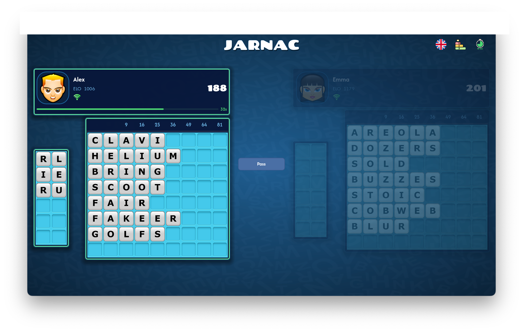 Build the longest, sharpest word you can from your rack. Every letter counts, every second matters.